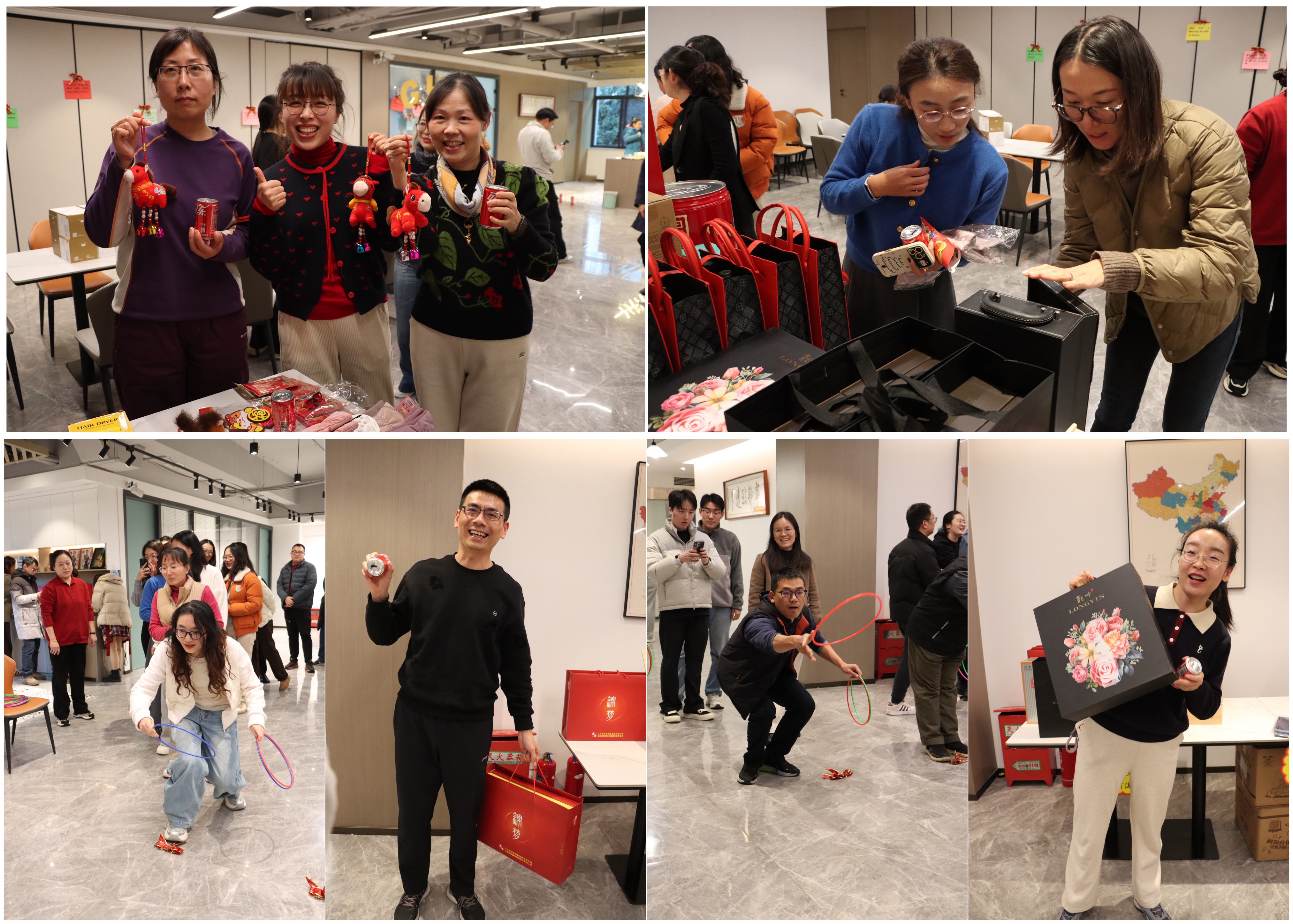 The ring-toss game ignited the fun first. In the activity area, rows of cola bottles were arranged into the giant letters “GHW”, and a variety of practical gifts were neatly displayed. Employees lined up in orderly fashion, three rings in hand, eyes focused on their targets with eager anticipation. Aim—throw—hit! Cheers and laughter rang out again and again; The “100% Prizing Winning” setup ensured every participant left with prizes, adding extra delight to the holiday.
