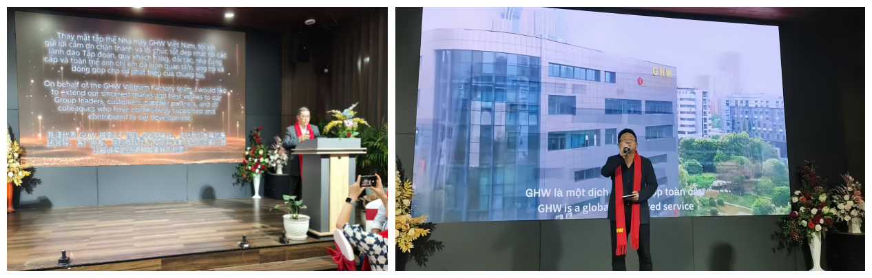 Mr. Zhao Meng, General Manager of GHW Vietnam Region, gave his New Year address. He stated that with the continuous expansion and upgrading layout of GHW's domestic and international production bases in 2026, the Group is entering a new development stage filled with unlimited potential and multiple opportunities. His optimistic outlook for GHW's steady growth and sustained prosperity won enthusiastic applause from all guests.